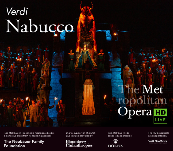 Ancient Babylon comes to life in a classic Met staging of biblical proportions. An account of the Babylonian captivity after the fall of Jerusalem at the hands of Nebuchadnezzar (Nabucco), it was Verdi’s third opera and at the age of 28, the one that made his career.