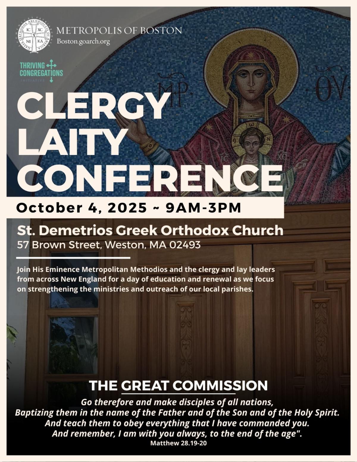 Join us at St. Demetrios Greek Orthodox Church for a day filled with spiritual growth, community building, and fellowship. This in-person gathering will bring together clergy and laity from across the Metropolis to share knowledge, deepen faith, and strengthen bonds. Don’t miss this opportunity to connect with others, learn from inspiring speakers, and engage in meaningful discussions. We look forward to seeing you there! Your tax-deductible donation to help offset the costs associated with the conference is greatly appreciated.