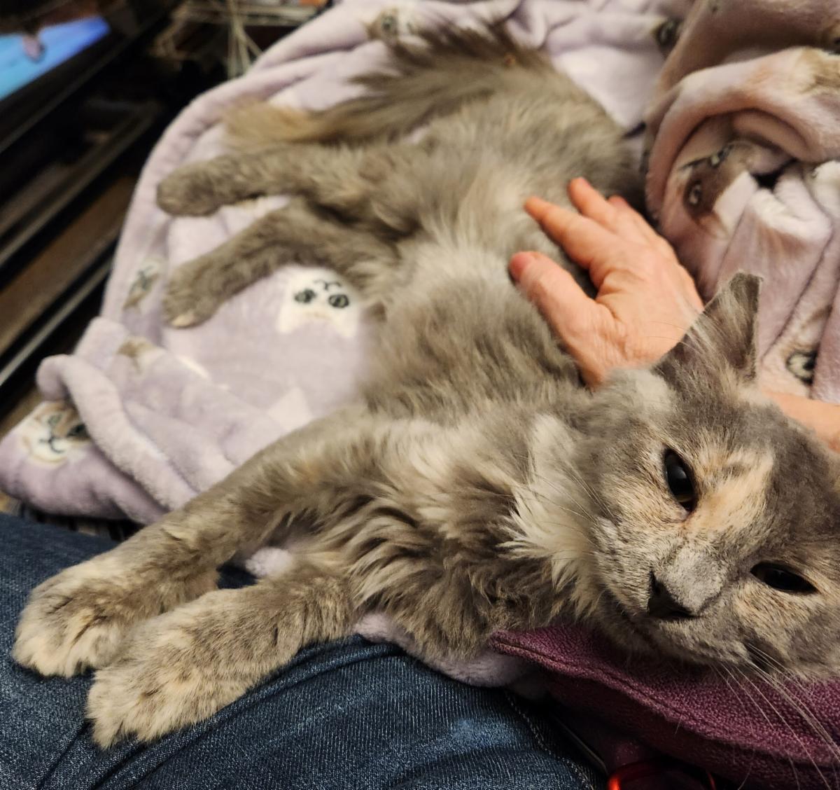 Her mom remembers being hesitant because Pussywillow was FeLV+, but the sweet kitty looked at her so endearingly. She reached in to pet her, and she immediately started purring. Pussywillow couldn't seem to get enough of the attention and chin scratches.