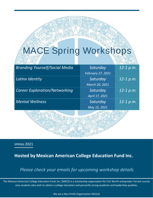 Without you, I would not have made it through my academic career. Coming from a low-income, first generation background, attending TCU and obtaining a higher education truly transformed my life. Through the MACE scholarship I was able to afford many of my textbooks for my classes (and we know those are not cheap). I was also able to use part of my scholarship funds to contribute to a study abroad trip during my time at TCU. I will forever be grateful for your contribution and investment in my education.