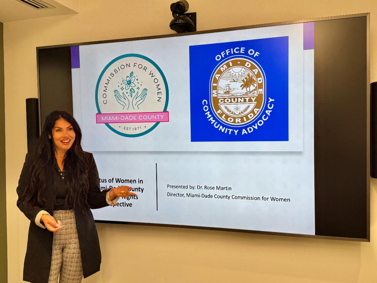 Dr. Rose Martin, Director of the Miami-Dade County Commission for Women (CFW), was invited to speak at the University of Miami School of Law’s Human Rights Clinic. During her visit, she presented findings from the 2024 Status of Women Report and shared how the CFW is using a data-driven, CEDAW-informed framework to advance gender equity in Miami-Dade County. You can read the 2024 Status of Women Report here.