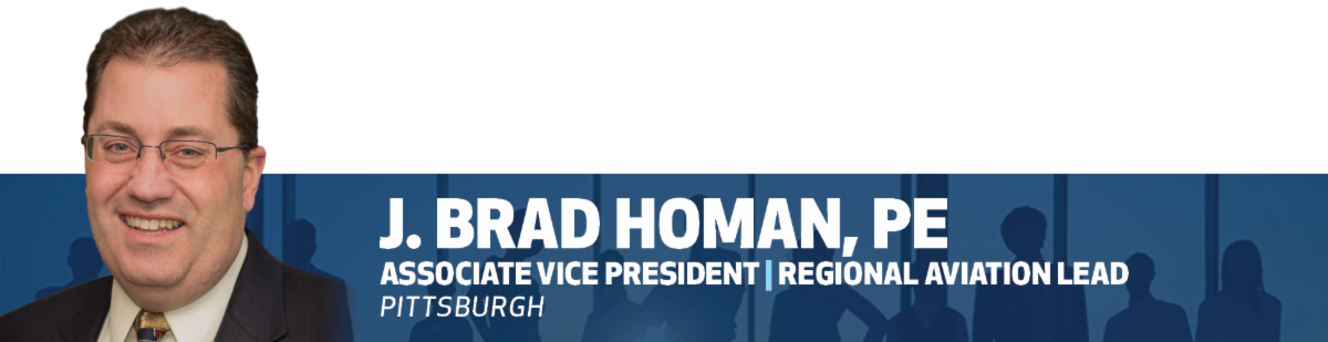 , has been promoted to Regional Aviation Lead supporting strategic growth in aviation in the greater Pittsburgh area and throughout Michael Baker's Great Lakes Region. Brad has been with Michael Baker for over 26 years, most recently serving as the Department Manager, Aviation, in the Pittsburgh Office. Brad also serves as the Assistant Project Manager for the Multi-Modal Complex for the Pittsburgh International Terminal Modernization Program. Brad has a Master's Certificate in Project Management from the University of Pittsburgh in Pittsburgh, Pennsylvania, and a Bachelor of Science degree in Civil Engineering from West Virginia University in Morgantown, West Virginia. He is a registered Professional Engineer in Pennsylvania, West Virginia, and Indiana. Brad serves as the Vice Chair for the ACEC/PA Aviation Committee and is a member of the Aviation Council of Pennsylvania.