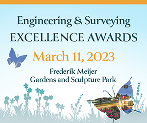 The 58th Annual Engineering and Surveying Excellence Awards Gala, an ACEC/Michigan hallmark, was held on March 11, 2023, at Frederik Meijer Gardens and Sculpture Park in Grand Rapids.