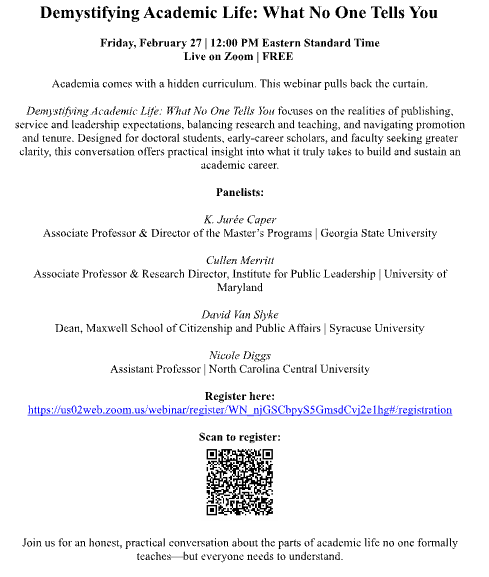 When: Monday, March 2, 2026 (8 am EST, 1 pm CET; 9 pm HKT), hosted by NASPAA)
