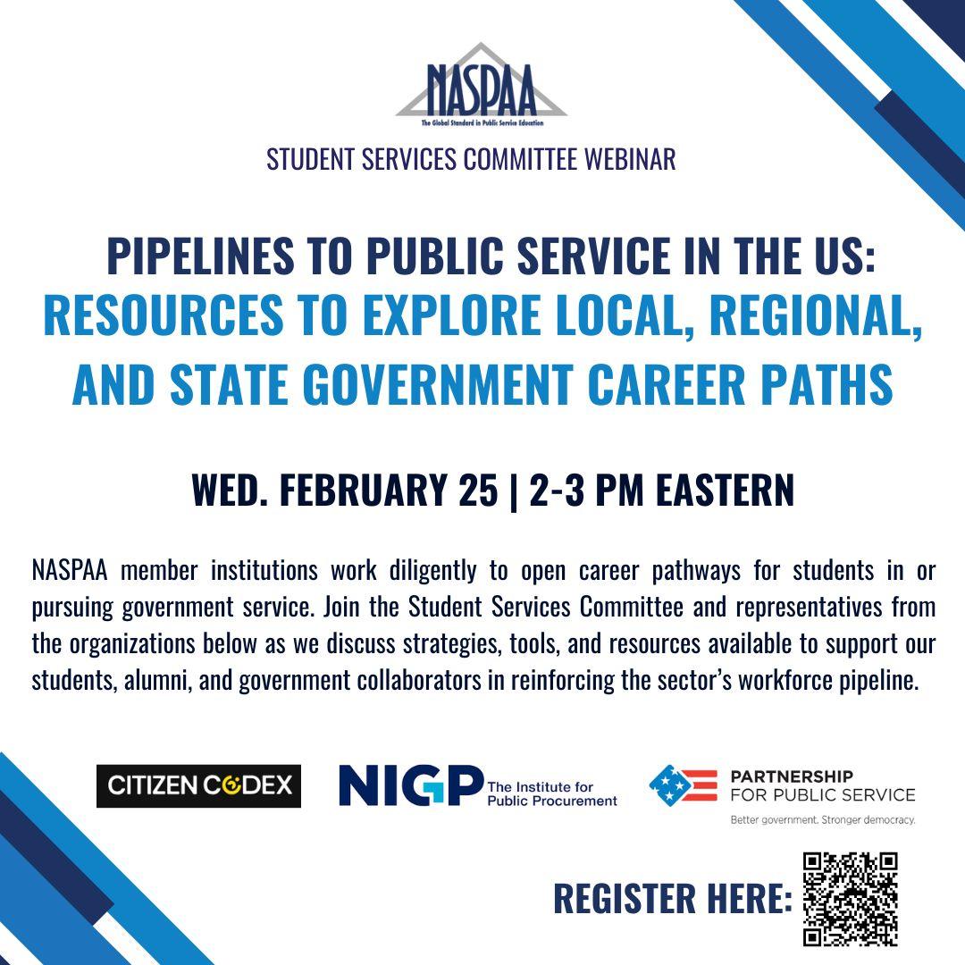 Join the Student Services Committee for an upcoming webinar titled "Pipelines to Public Service in the US: Resources to Explore Local, Regional, and State Government Career Paths."