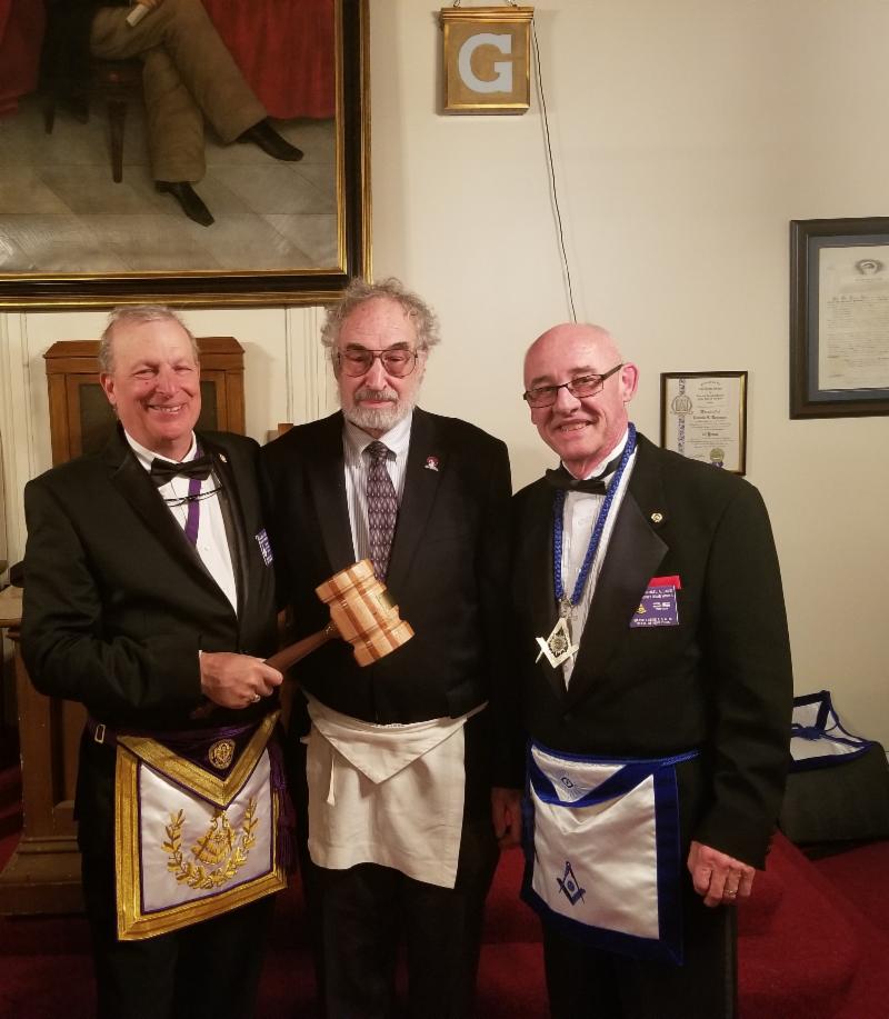 On this night, the added attraction was the start of the new Traveling Gavel of our new District. The Gavel was made by our own R.·. W.·. Michael Davis out of 3 woods, cherry, maple and oak into 1 solid mass - they represent the 3 districts coming together for the more noble and glorious purpose as 1 solid district.