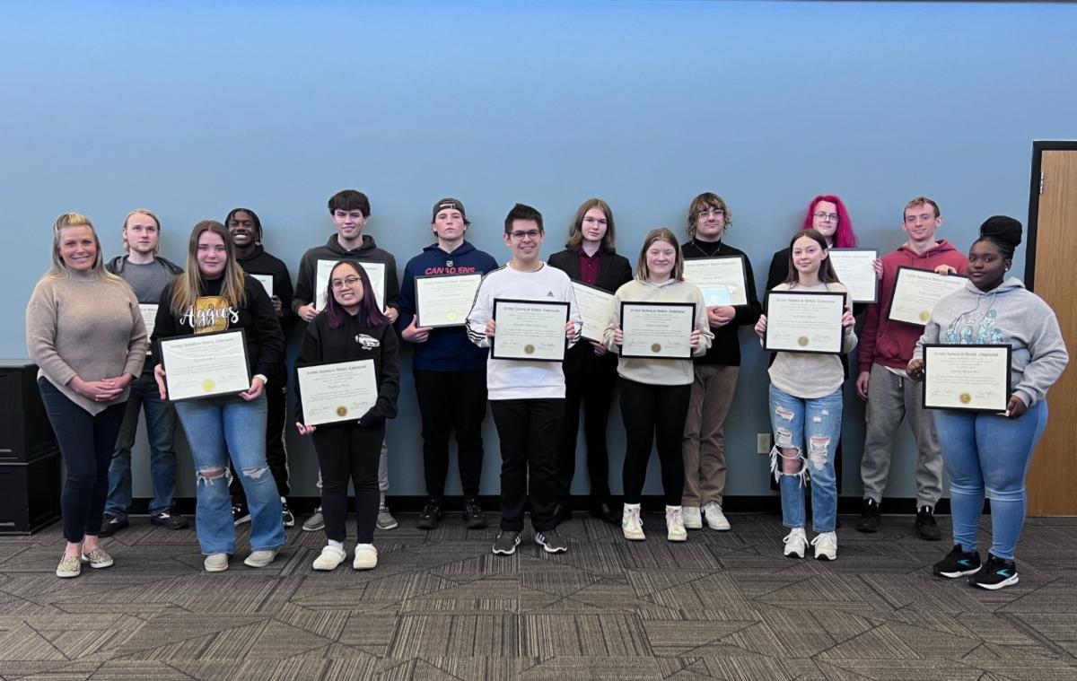 On Wednesday, March 20, 2024, the Wilson Talent Center (WTC) awarded nearly $18,000 in scholarships to graduating seniors. To be eligible, students needed to complete a scholarship application and have a recommendation from their WTC instructor. In addition, six outstanding alumni were also recognized for their success after leaving the WTC and contributions to their respective industries. The scholarships are made possible by the generous donations from individuals, families, businesses and community partners.