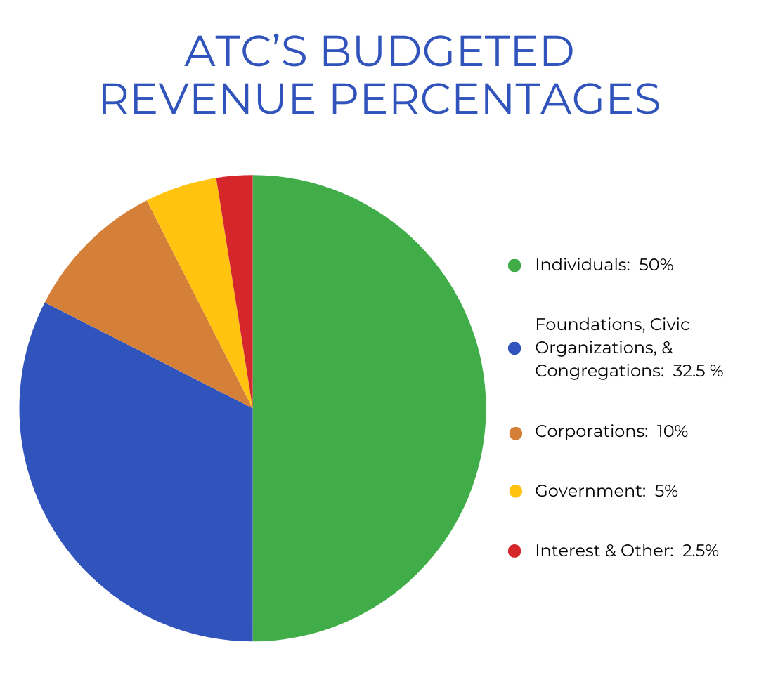 ATC is proud to have a healthy and robust revenue model. The bulk of our support comes from dedicated and generous individuals. We are fortunate many local foundations, corporations, civic organizations, and congregations donate to ATC. Additionally, ATC receives funding through the City of Alexandria's Fund for Human Services to run 2nd-grade Book Buddies programs in four Title I schools.