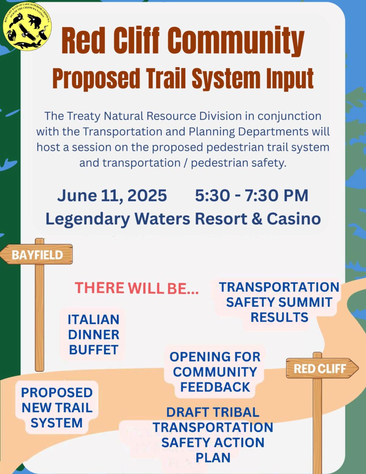 The Red Cliff Tribe will host a public hearing to discuss the draft 2025-2028 Public Law 102-477 Plan for Employment, Training, and Related Services. This plan proposes to consolidate up to eighteen (18) federal grant programs to enhance employability, expand employment opportunities, and improve training outcomes for the Red Cliff Community.
