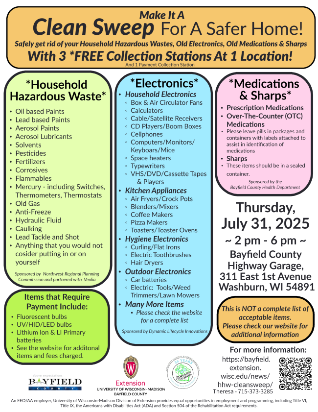 If you have any questions regarding hazardous waste or hazardous waste disposal, please contact the Environmental Department at 715-779-3650.