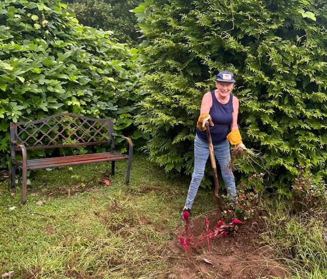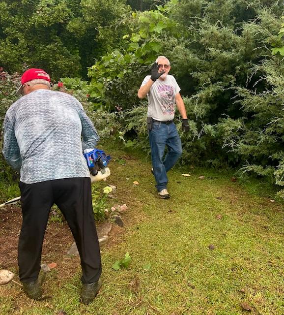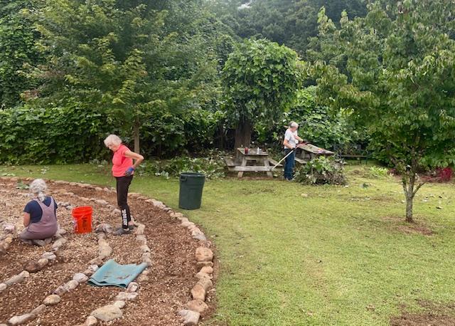 | | Let's hear a huge round of applause for Mike Rizner and his merry band of men and women who worked hard to get our labyrinth, meditation garden and all of our grounds into tiptop shape for our celebration of the World Day of Prayer. Judging by the expressiions on their faces, it definitely looks like they managed to mix some fun with their hours of toil. Many thanks to everybody who showed up. You epitomize the motto that says, "Many hands make light work!" | |
