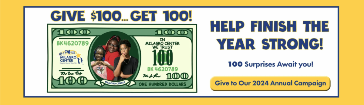 Well, here we are in 2025 already! The holidays were a whirlwind of activity here at Milagro Center. Our students enjoyed a Toys for Joy gift giveaway, a shopping day for holiday gifts for their parents provided by Touch a Heart Foundation, a giving tree where they each picked a gift they wanted, art supplies donated by No Open Spaces, gifts galore provided by Spirit of Giving Network, and many more fun things.
