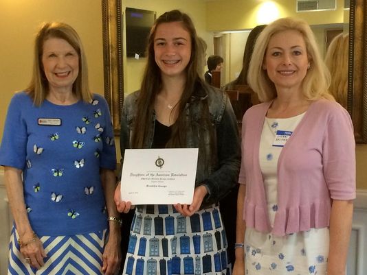 Mariemont Chapter DAR honored eighth-grade American history essay chapter winner Brooklyn George, a Milford Junior High School student, at the April 16 meeting at Armstrong Chapel.