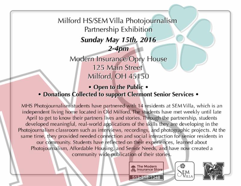 Milford High School photojournalism students, under the direction of teacher Janelle Schunk, have partnered with 14 residents at SEM Villa and have met weekly with their partners all semester.