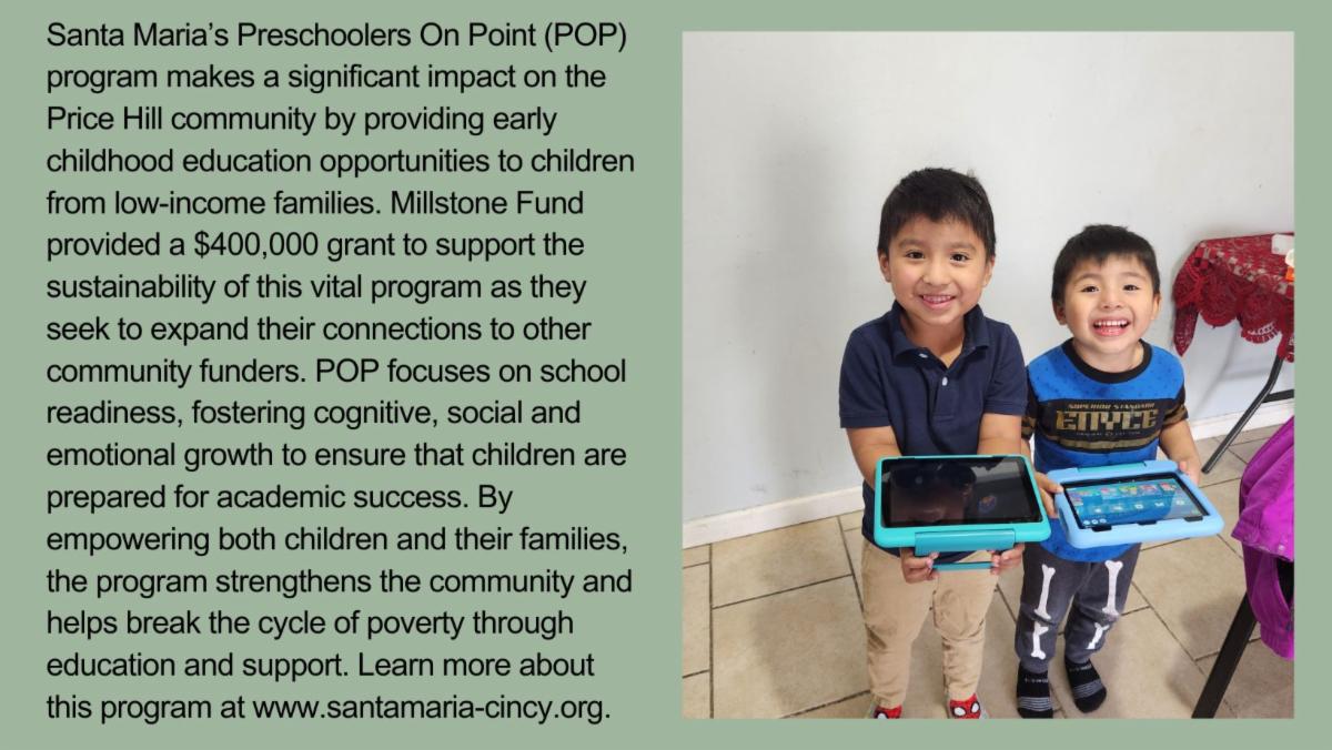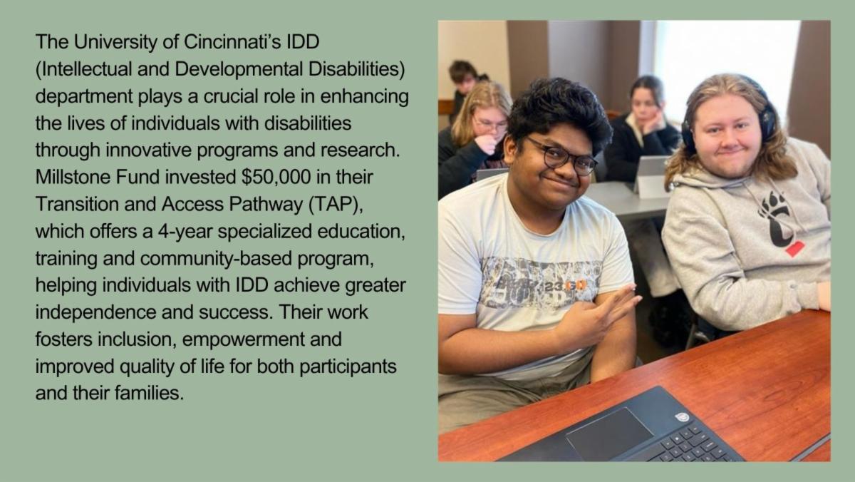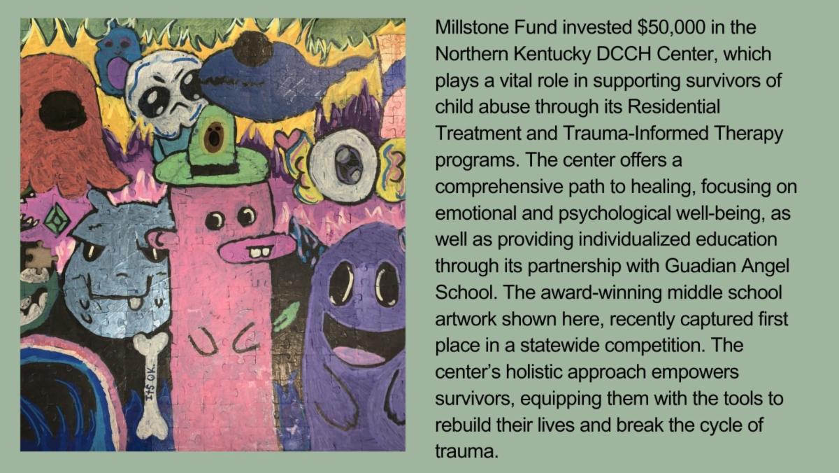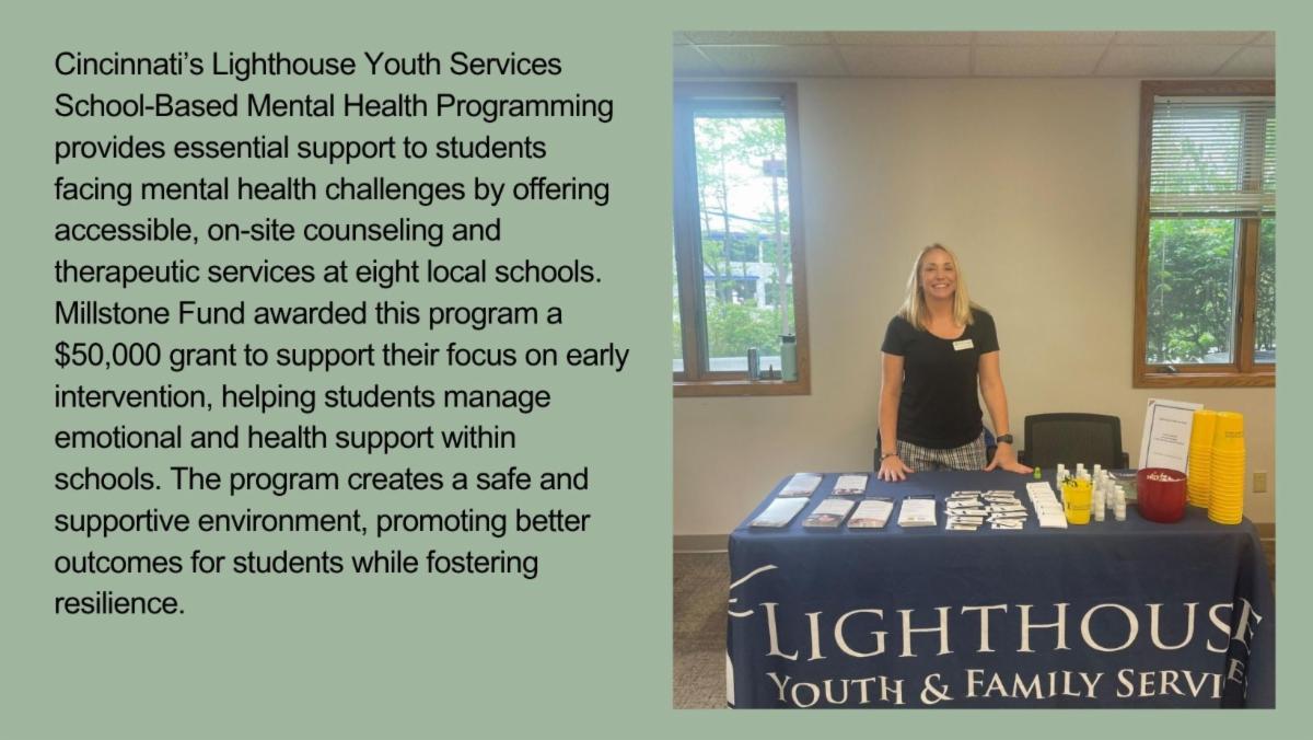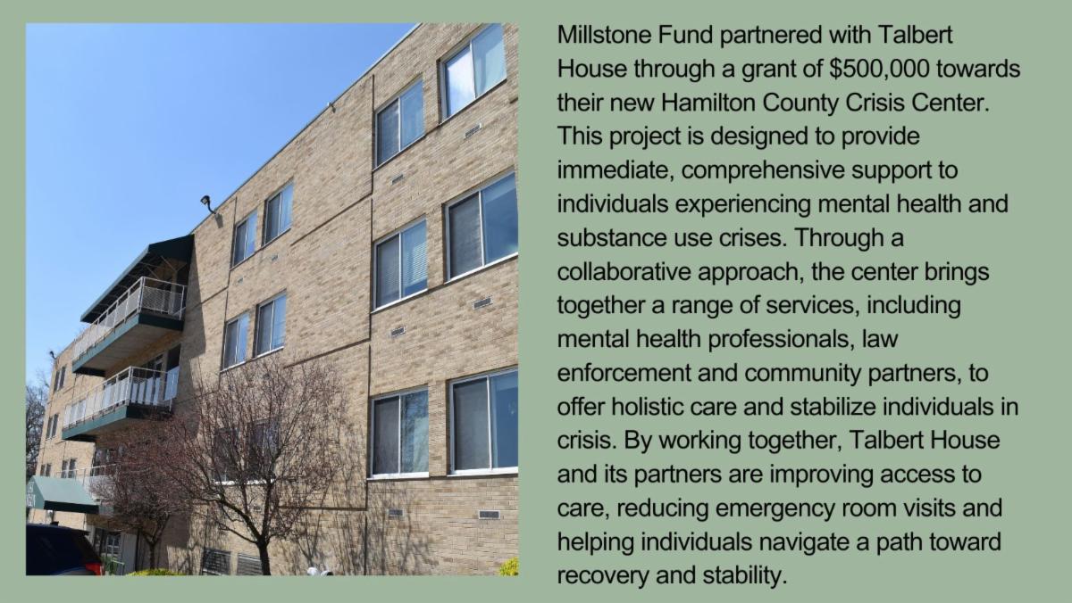 As we navigate the evolving landscape of 2025, Millstone Fund remains steadfast in its place-based mission within our pillars of health, education and the arts. We recognize the growing funding pressures along with the persistent crisis we face in the mental and behavioral health space. We are inspired and motivated by the incredible passion of our partners to heal and enrich our community of Greater Cincinnati. Our focus remains to foster resilience and drive meaningful change through strategic investments and partnerships.