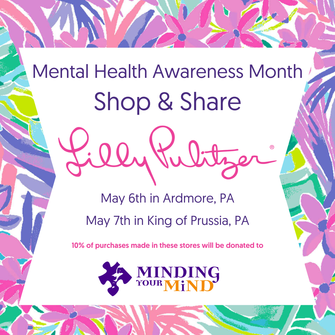 Spring is here and summer is just around the corner, it's time to brighten up your wardrobe! In recognition of Mental Health Awareness Month, two Lilly Pulitzer stores in the Philadelphia, PA, region are hosting Shop & Share days to benefit Minding Your Mind. Enjoy sips, snacks, and shopping on Saturday, May 6th in Ardmore, PA and on Sunday, May 7th in King of Prussia, PA. 10% of that day's sales in the store will be donated to Minding Your Mind. We are grateful to Lilly Pulitzer for their generosity and work in helping to raise awareness around mental health. Read more