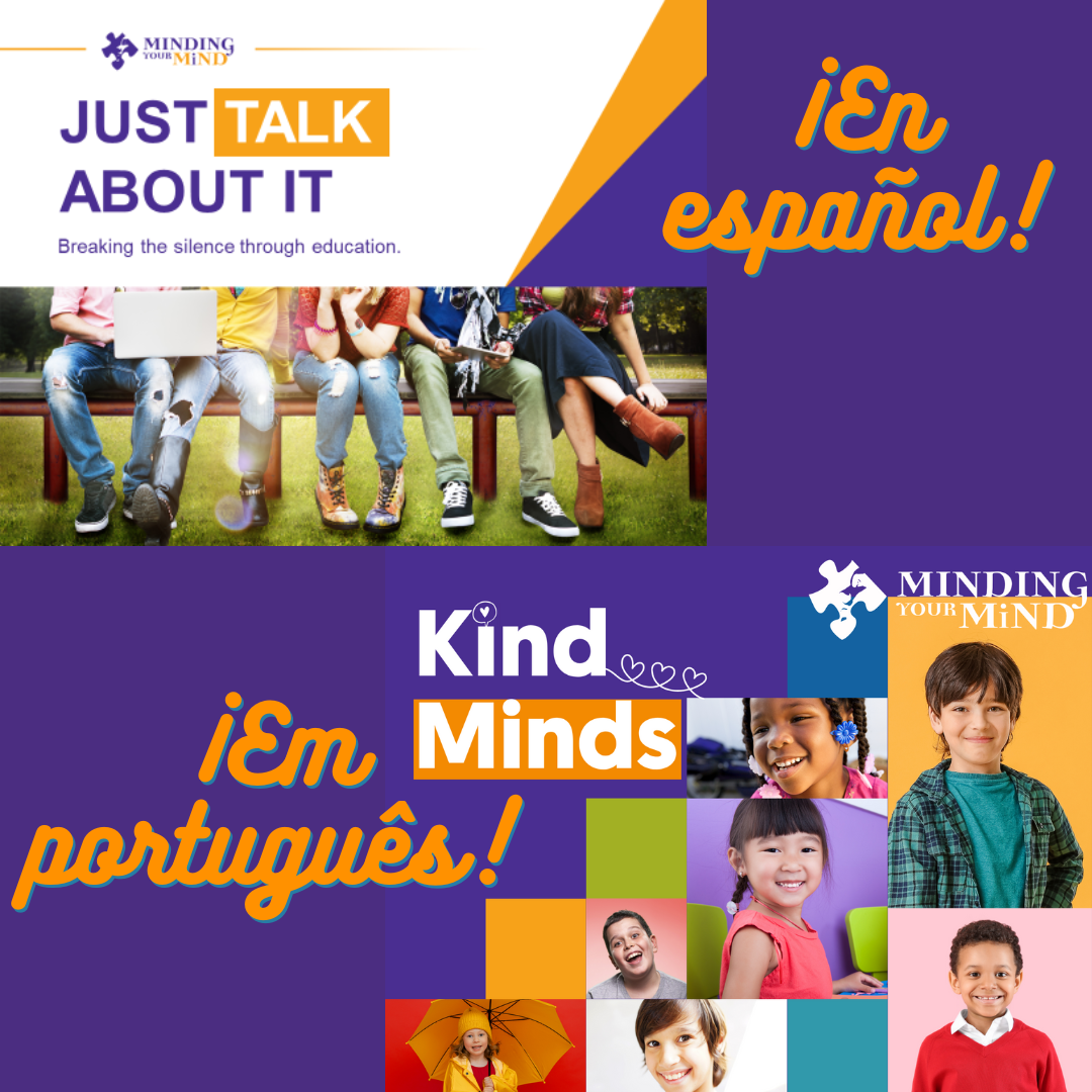 Two of Minding Your Mind's most popular programs are available to be presented in Spanish and Portuguese. Just Talk About It is for parents, teachers, and other involved adults, and Kind Minds is for young children in grades K-4. In-person Spanish presentations are available in California (LA and San Diego) with Fabian Escobedo, LCSW, and in New Jersey with Margarita Torres, LCSW. In-person Portuguese presentations are available in New Jersey with Suzelle Marques, LPC. Virtual presentations are available everywhere! Book now