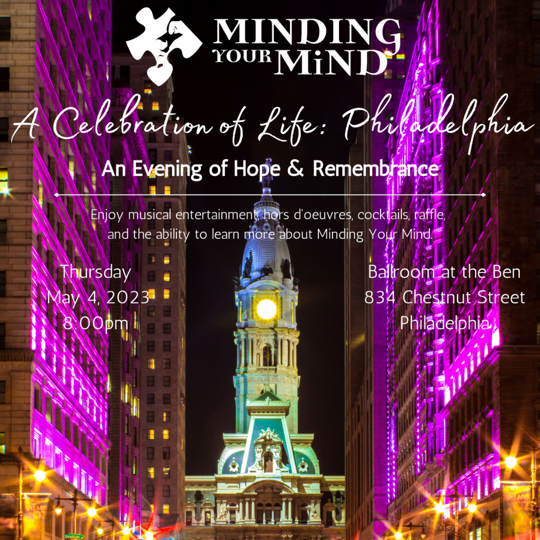 A Celebration of Life is a movement focused on inspiring hope, while also remembering lives that have been lost to suicide. The evening creates special moments and appreciation for life. Funds raised from this event will support Minding Your Mind's mental health education programs in the greater Philadelphia area.