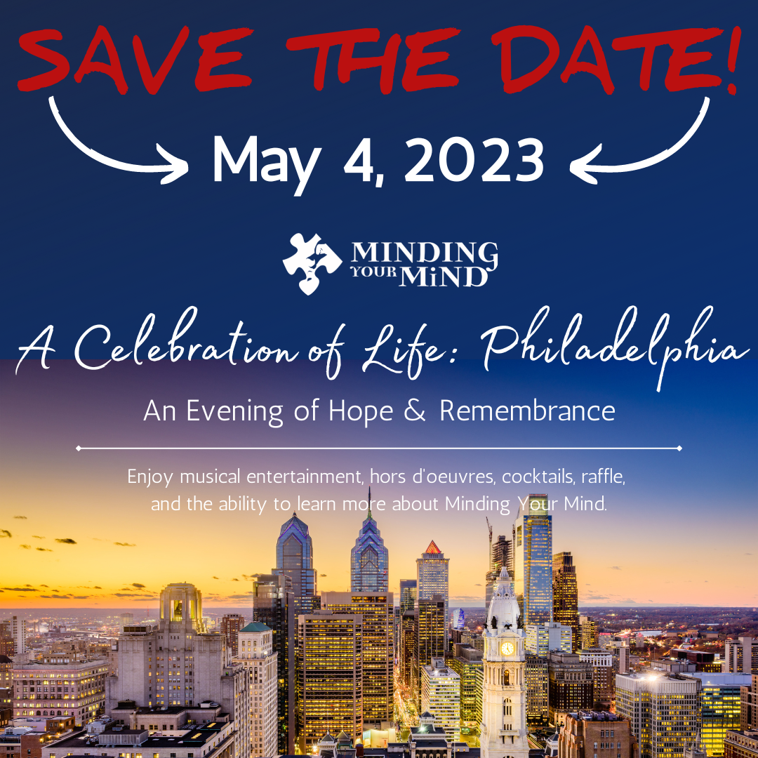 Minding Your Mind's Philadelphia Young Professionals Board is excited to announce the date for the 6th Annual A Celebration of Life: Philadelphia — on May 4, 2023 we will gather with our friends and supporters at the Ballroom at the Ben, to remember the lives of those we have lost and continue to celebrate their lives. All funds raised will go to support mental health education programs in the greater Philadelphia area. Stay in touch for information on sponsorships, tickets, and all the fun! In the meanwhile, revisit last year's event here.