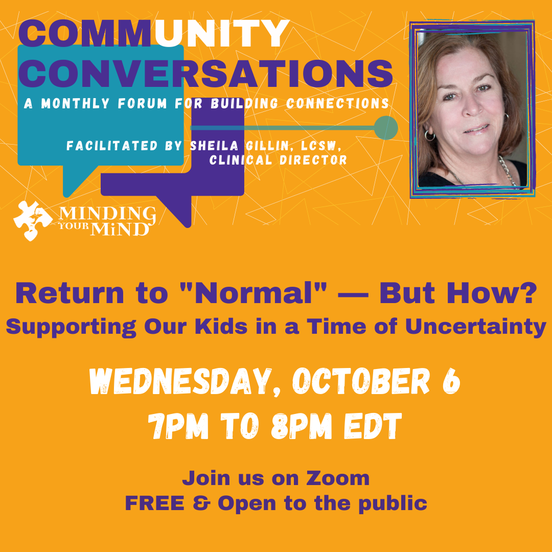 After taking a break this summer, the highly successful Community Conversations panels return on Wednesday, 10/6, facilitated by MYM's clinical director Sheila Gillin. October's topic couldn't be more timely for parents and caregivers of students spanning all ages.