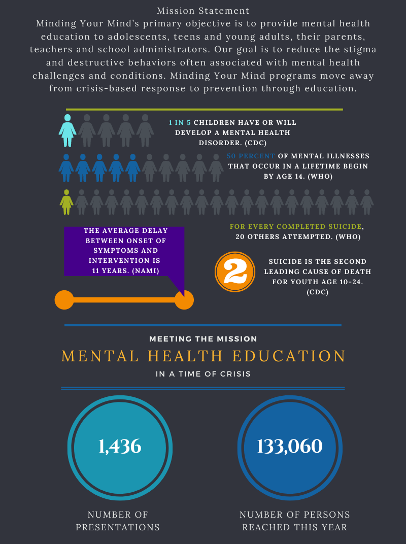 In conjunction with National Suicide Prevention Month, Minding Your Mind is launching a new campaign to inspire students from middle school through college to have access to help at their fingertips.