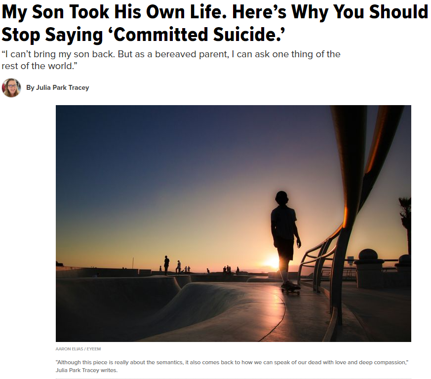 It's a challenge any time society tries to adjust words or phrases that have been in common use for decades. But we know we, as a society, are capable of making those adjustments. We've done it before, we can do it here with suicide. Let's all work together to bend toward compassion and understanding and away from shame and stigma.
