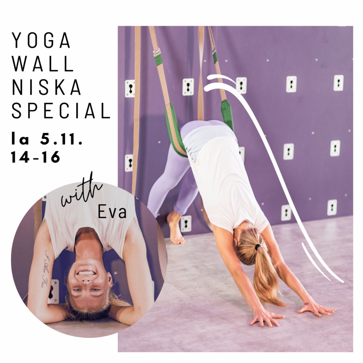 Tulevana lauantaina 5.11. klo 14-16 tarkkanäköinen ja hurmaava Eva opastaa sinut rennon niskan lähteille Yoga Wall Niska Special -työpajassa. Ole nopea - vielä mahdut mukaan!
