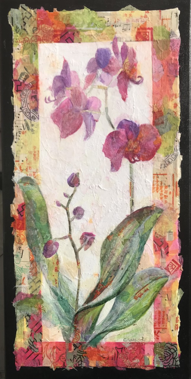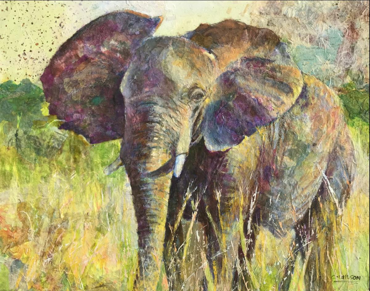 Carolyn Wilson, presents Favorite Things, an eclectic collection of mixed media and collage works that explores a variety of birds, animals, florals, landscapes - all near and dear to her heart. Creatures great and small, from gentle giant elephants to tiny backyard hummingbirds; landscapes exotic, local and imagined.