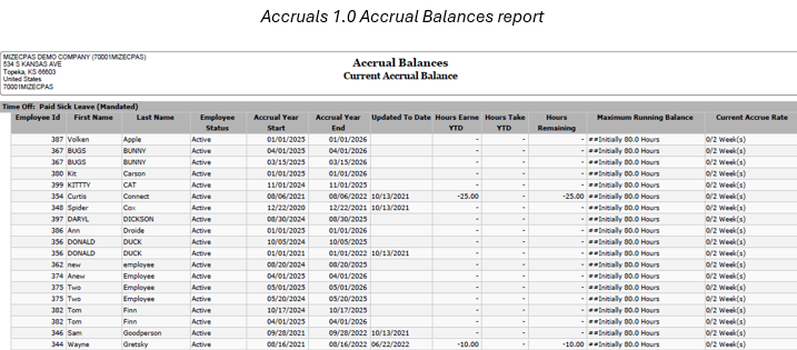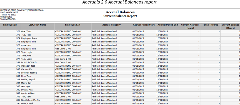 Again, the updated to date is no longer needed. In addition to the Accrual Balances report, new reports include Hours for Current Payroll, Hour During Accrual Process, Accrual Detail (by Modify Date), and Employee Accrual History.