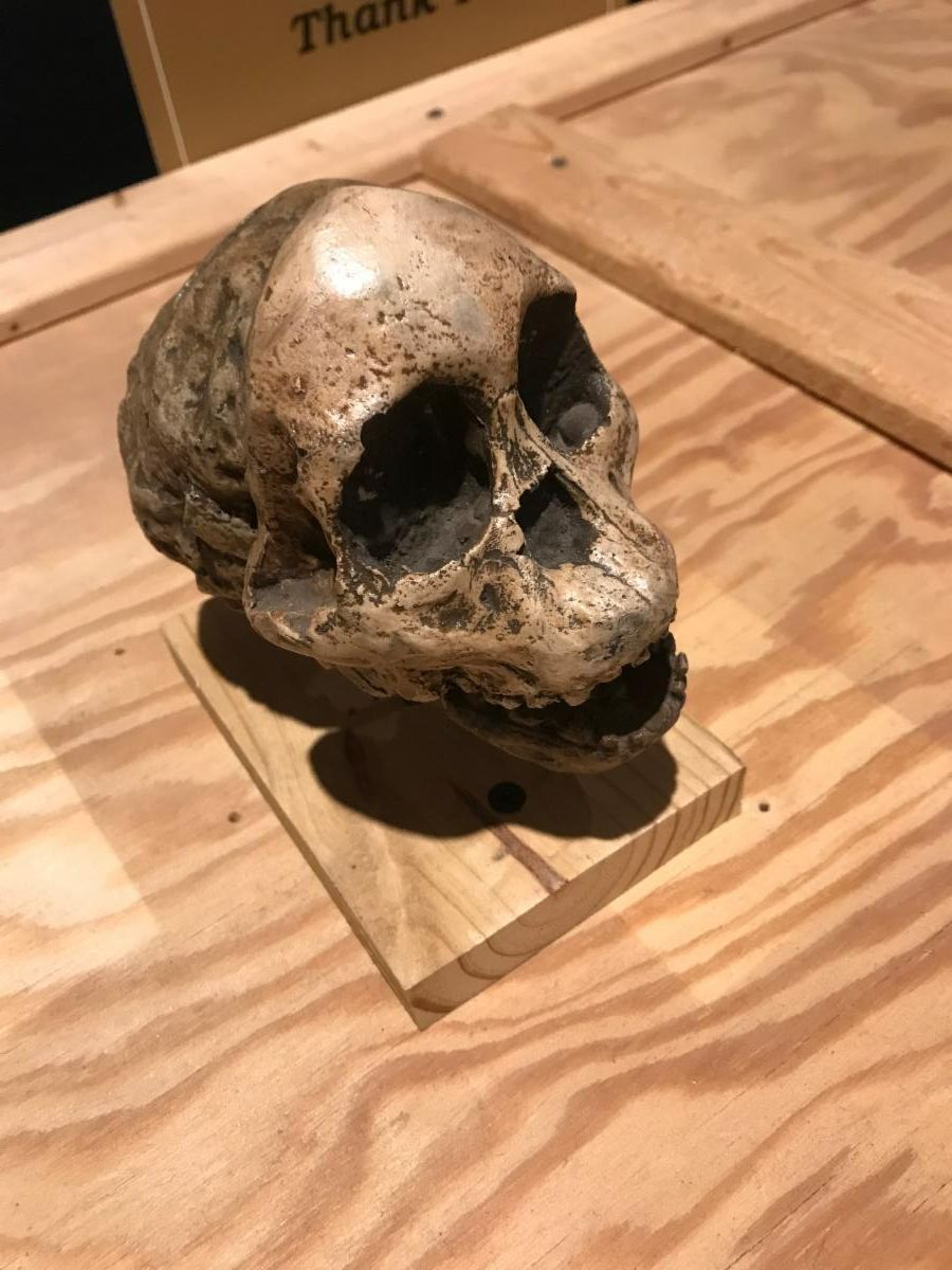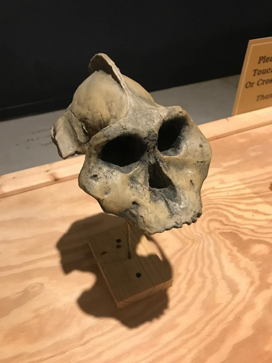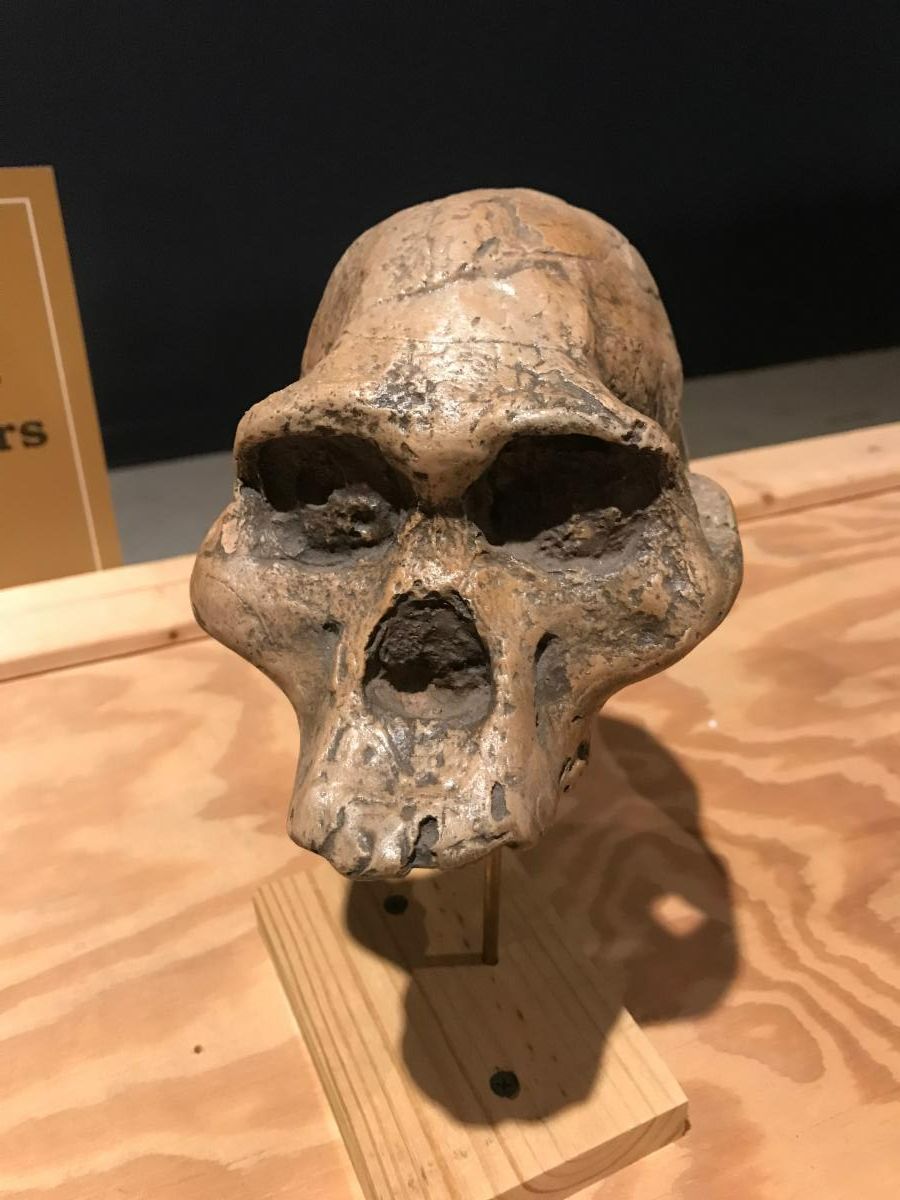 Formerly recognized as “Plesianthropus (“Near Human”), this skull was discovered by Robert Broom in1947 in the Sterkfontein quarry and became popularly known as “Mrs. Ples”, although it is now recognized as Australopithecus.