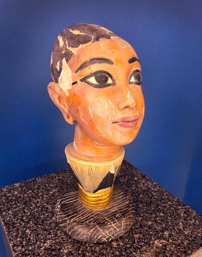 While Howard Carter was locked out of the tomb by the Egyptian government, an official inventory of its separately stored contents revealed this painted wooden bust of the young pharaoh, undocumented and previously unknown to the authorities, suspiciously concealed inside a small wooden box. Bearing the misleading emblem of the English vintners Fortnum & Mason, it was obviously prepared for shipping. Carter’s embarrassed explanation was that the sculpture had been found in the rubble filling the tomb’s corridor (where it had presumably been abandoned in antiquity by fleeing robbers) along with a number of other objects that were “not yet fully registered.” The portrait faithfully captures Tutankhamun’s elongated platycephalic skull, a common feature among members of the inbred royal family of Amarna. A touching likeness of the young pharaoh, the sculpture represents him as the solar deity emerging from the corolla of the primordial lotus at the moment of creation. As a ritual object it symbolizes his divine rebirth every day with the rising sun. After more than 30 centuries of darkness, the pharaoh’s long night ended in 1922 with the first gleam of sunlight from Howard Carter’s breach in the tomb’s sealed entrance: