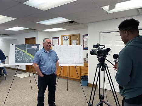 Area Engineer Jose Rodriquez conducts an interview with a local news station regarding the intersection improvement project. | |