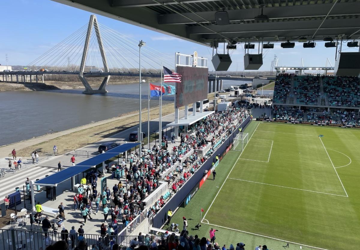 CPKC Stadium during game day with a view of the Christopher "Kit" S. Bond Bridge. | |