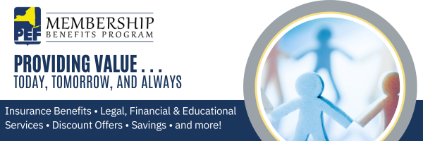 Effective October 1, PEF MBP will only send email communication to personal email addresses on file due to New York State restrictions on the use of work emails. In addition, state agency email addresses are no longer accepted when purchasing benefits such as discounted tickets, gift cards, and any other PEF MBP benefit offering. If you currently subscribe to PEF MBP emails with a state agency email address or use a state agency email address to make purchases, please contact us to update that address to a personal email by 5 p.m., September 29. Call (800) 767-1840, opt. 1, as soon as possible. If your work address is not updated by 5 p.m., 9/29, effective October 1, you will no longer receive emails from PEF MBP, and purchases will not be processed.