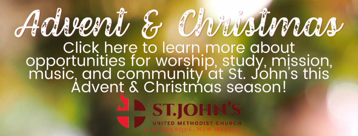 Let’s share the spirit of Advent and Christmas by sharing photos of our at-home altar spaces, the lighting of Advent candles, and our holiday decorations! Please also consider sharing a favorite Advent & Christmas activity or memory! Email your photos and a description to Shea at communicate@stjohns-abq.org.