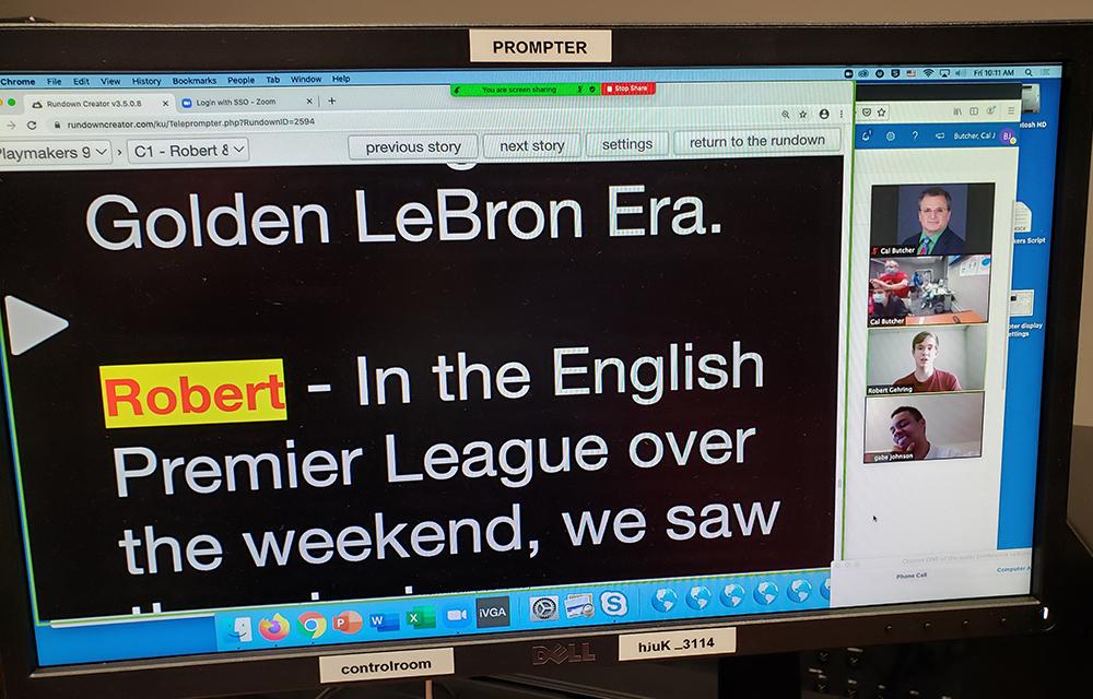 Broadcast media students are successfully producing eight shows per week and trying to make sure everyone is involved. Last week, they included several live shots from students who are quarantined and incorporated a Zoom session that included the teleprompter to allow for seamless timing. Watch live online here. The schedule is: