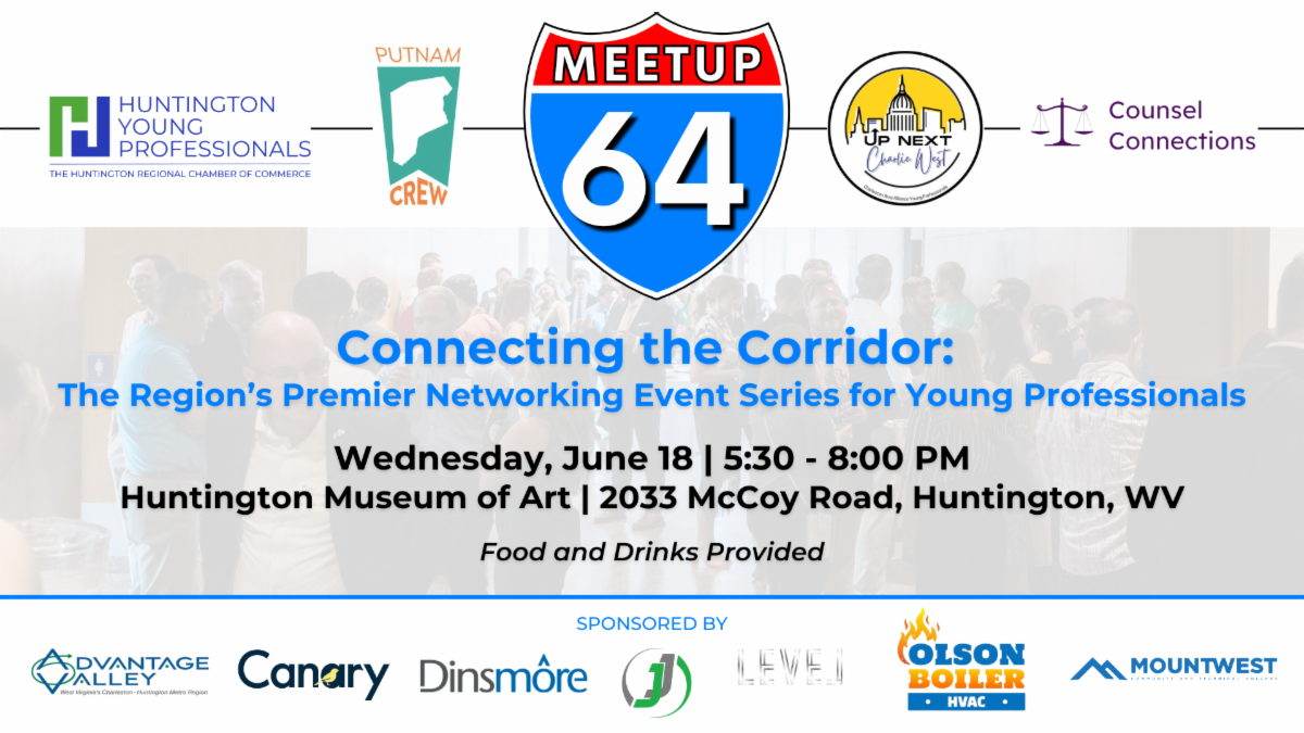 Join us for an exciting collaborative networking event featuring Up Next Charlie West, Putnam CREW, Huntington Young Professionals, and Counsel Connections members. Meet-Up 64 is the premier networking series along the I-64 corridor.