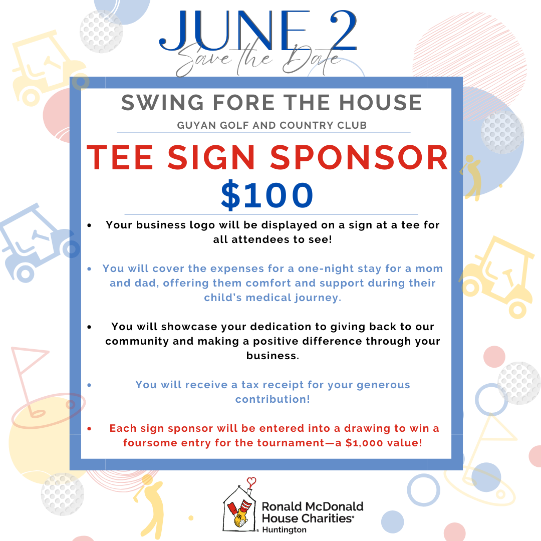 For just $100, your business can sponsor a tee sign at our upcoming Ronald McDonald House Charities Golf Tournament—and the impact goes far beyond the green. 💛