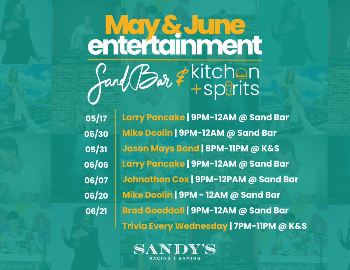 | | Upcoming Entertainment at Sandy's Racing & Gaming | | HMA to Showcase the Artwork of Participants in Studio Classes and Workshops | | |