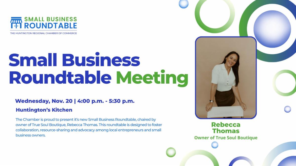 Chaired by Rebecca Thomas, owner of True Soul Boutique and Leadership Huntington Class of 2025 graduate, the roundtable will offer small business owners a space to share resources, exchange ideas and find strength in community.