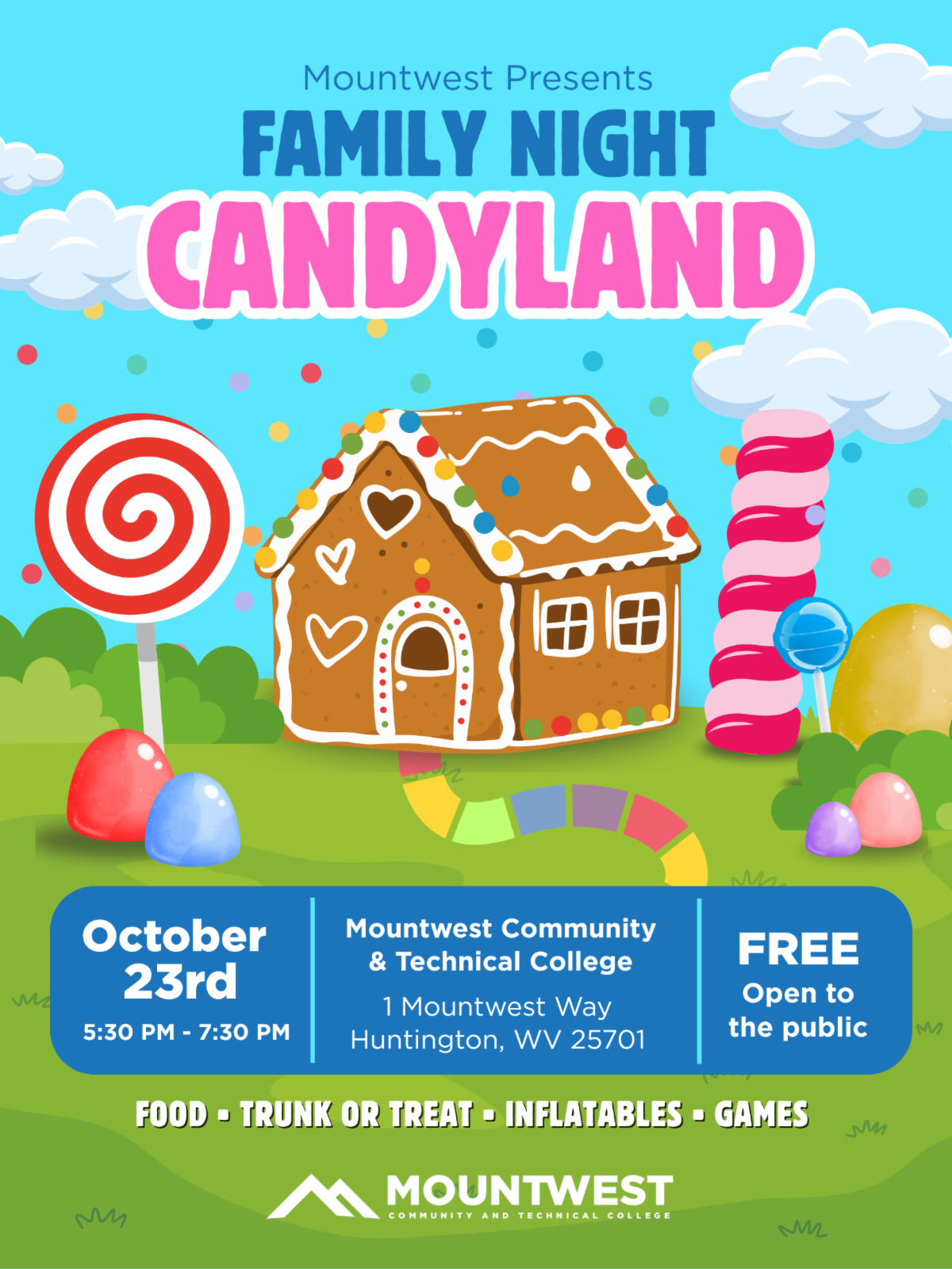 Mountwest Community & Technical College will host its 2nd Annual Family Night and Trunk-or-Treat on Thursday, October 23, from 5:30 to 7:30 p.m. at 1 Mountwest Way in Huntington.