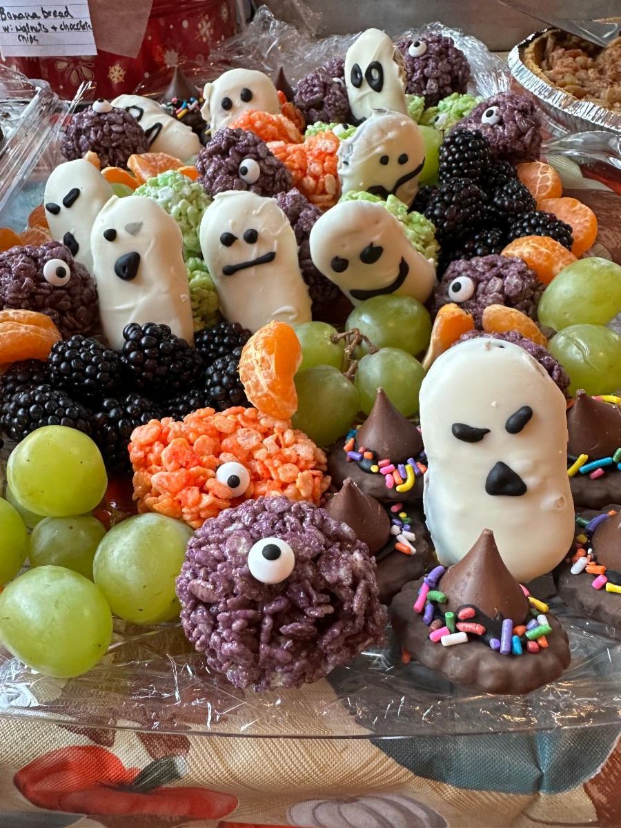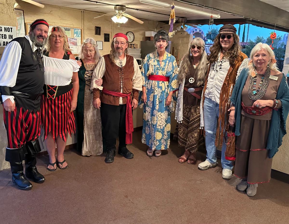 On Halloween, around ninety-ish Esperanza Estates' residents were treated to a scrumptious Halloween Potluck dinner, compliments of our fabulous Hospitality Committee and our many EE cooks. We had pumpkin decorating and costume contests, and something green to drink called Witches Brew! Thank you so much, Hospitality Committee and EE cooks, for giving us such a fun evening...these events mean a lot to our neighborhood!