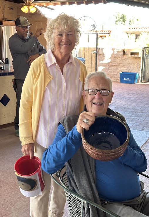 The winner of the beautiful ceramic bowl was Linda Symes, who is currently vacationing in Equador.