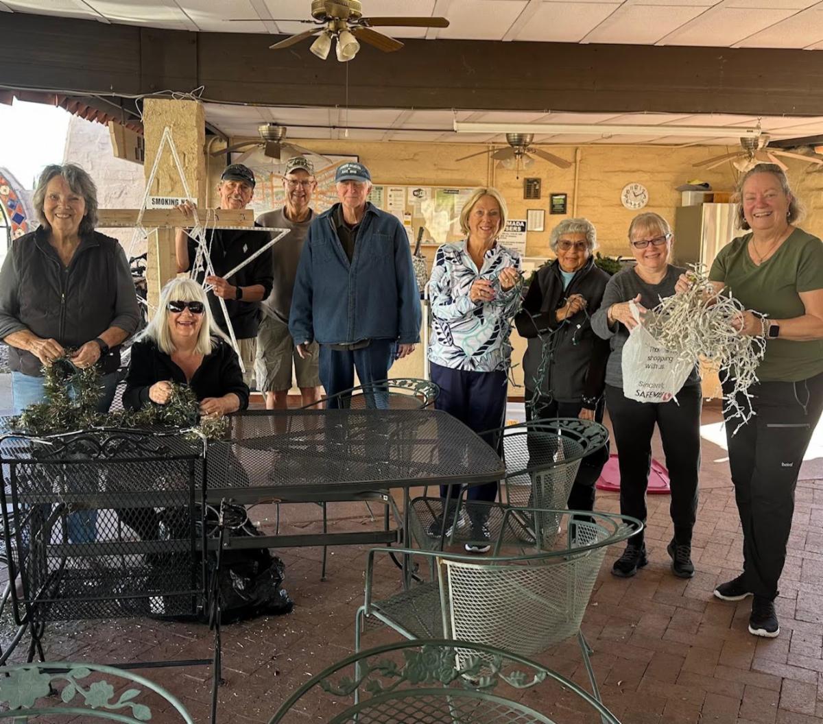 Members of the Enhancement Committee were at the Ramada on Friday, taking down the holiday decorations. They also put up the decorations, including the lampposts in front of the Ramada area.