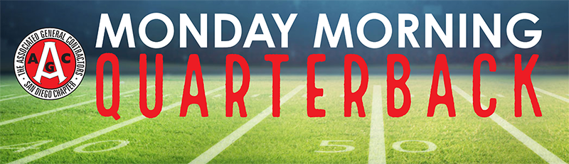 AGC San Diego Chapter's Monday Morning Quarterback is a "hot off the press" and to the point Monday morning briefing on the important issues facing San Diego's construction industry. It is prepared by AGC Chief Executive Officer, Eddie Sprecco, and Vice President Government & Industry Relations, Dustin Steiner.