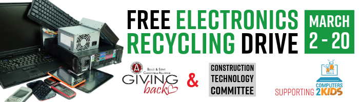 The Build & Serve & the Construction Technology Committees free electronics recycling drive starts today supporting Computers 2 Kids. Take a look at our collection sites from our member companies below!