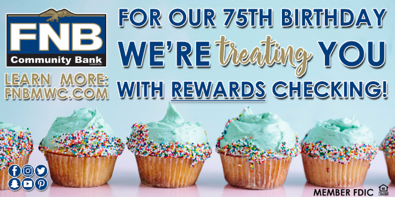 For our 75th birthday, we are treating YOU with a brand new Rewards Checking Account interest rate! That’s right, we have officially raised our high yielding account rate to 2.25% APY*!!!!