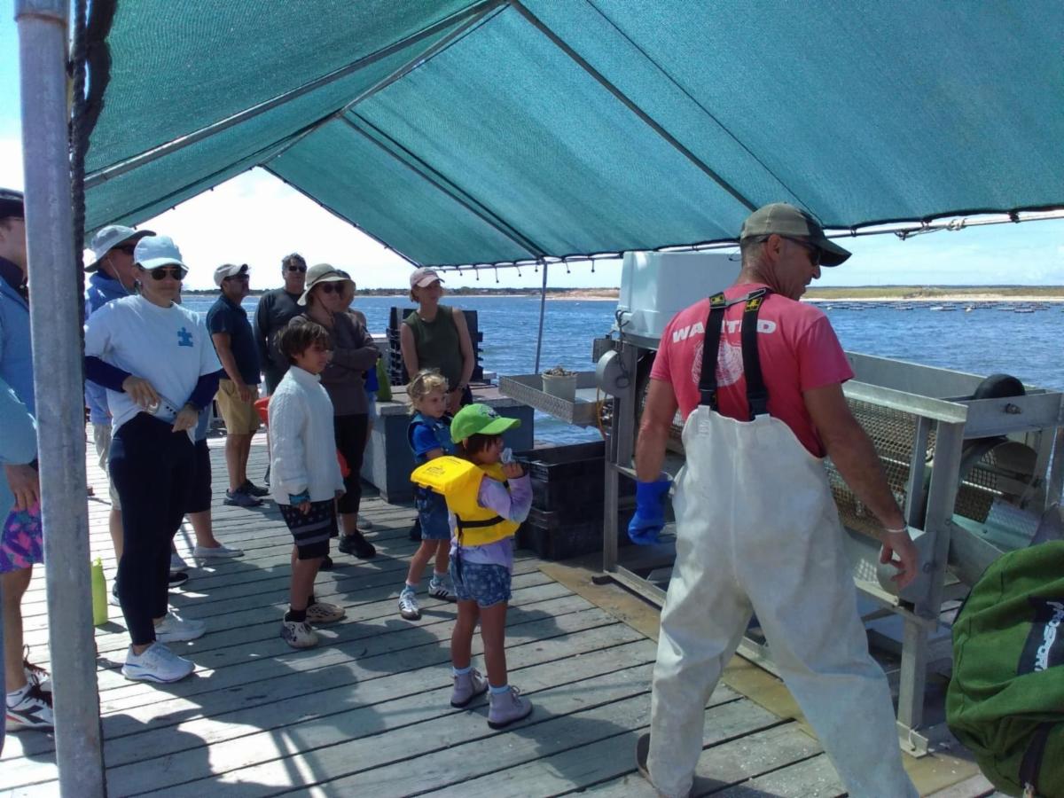 On August 28th, CCOM partnered with the East Hampton Town Shellfish Hatchery and the South Fork Natural History Museum (SOFO) to host a hands-on oyster seeding event. Led by "Barley" John Dunne (EHSEED), Rebecca Holloway (CCOM), and Rebecca Rogers (SOFO), 20 community members joined us on the water to seed oysters into the harbor from a boat and learn about local aquaculture.
