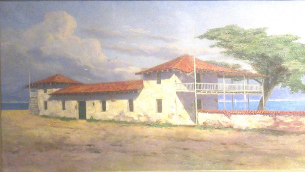Hanging in Casa Serrano for the past 58 years is an oil painting of the Custom House done by Chris Jorgensen. In Mayo Hayes O’Donnell’s March 6, 1967 Peninsula Diary one finds out that “at the February meeting of the Board of Directors of the Monterey History & Art Association, held in Casa Serrano, the association’s headquarters on Pacific, an oil painting of the Old Custom House, painted by Jorgensen in 1928 was unveiled. The painting had been discovered by Myron Oliver who restored it and cleaned it and then offered it to the association. The directors purchased the painting and it is now hanging in the Casa Serrano, where visitors may see it on Saturday and Sunday afternoons each week.”