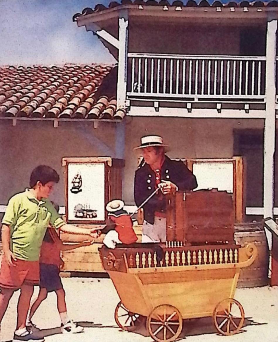 Philip Charles Monroe (1947 – 2024), The Hurdy Gurdy Man, who with his monkeys entertained at Fisherman’s Wharf for 34 years gifted several organs, his cart, monkey costumes, his own costumes, and a wonderful collection of photographs and memorabilia to MHAA.